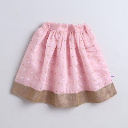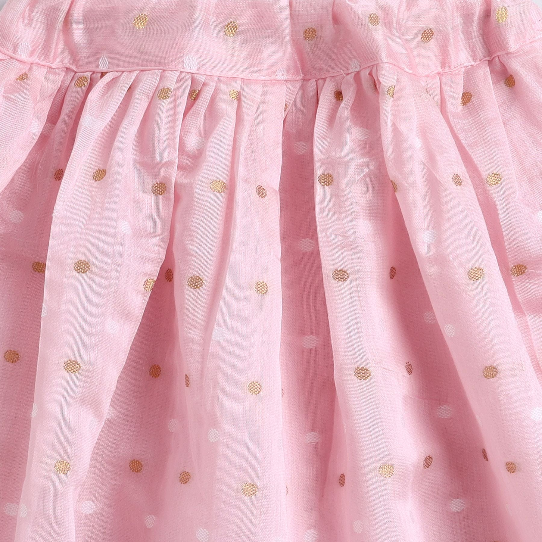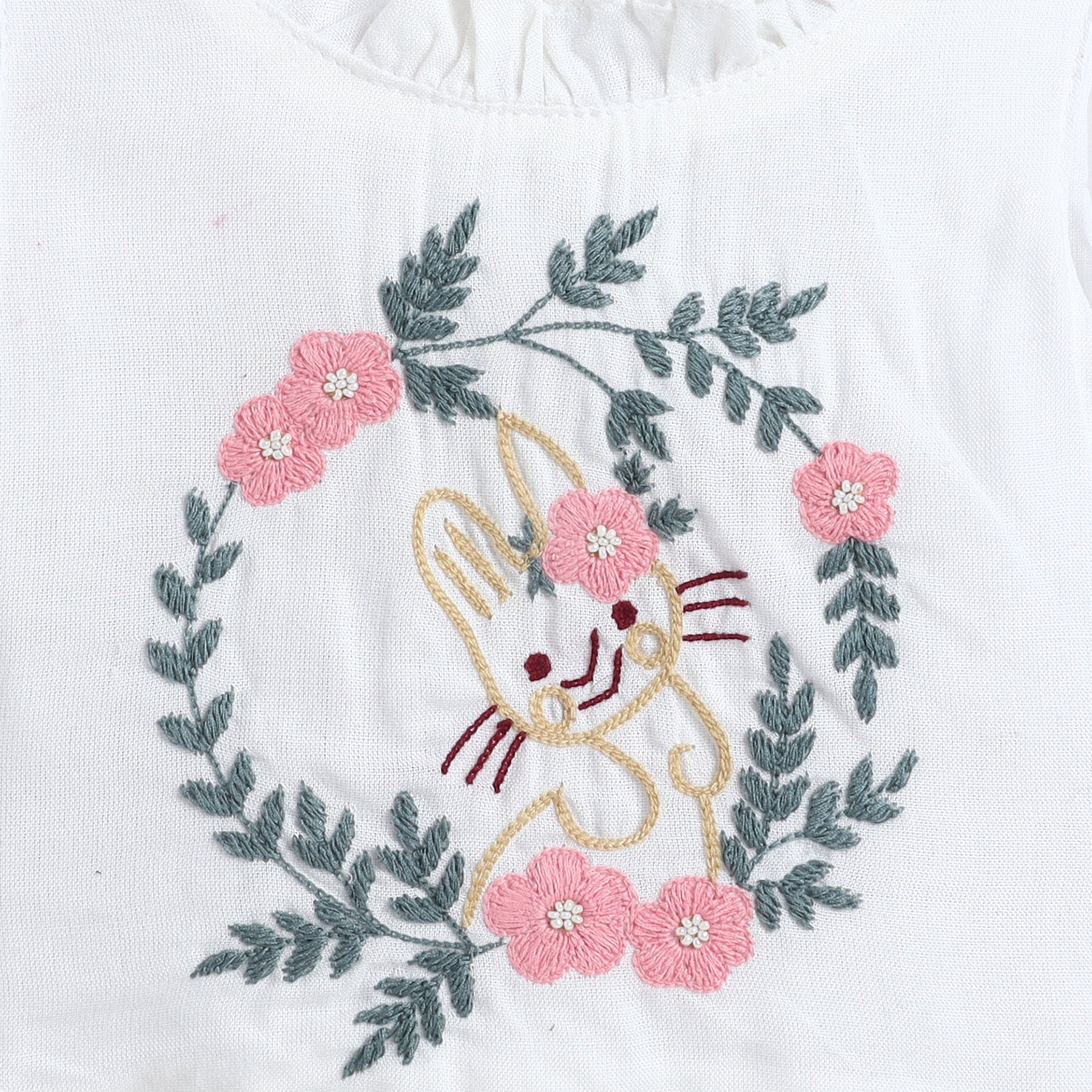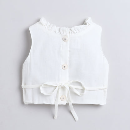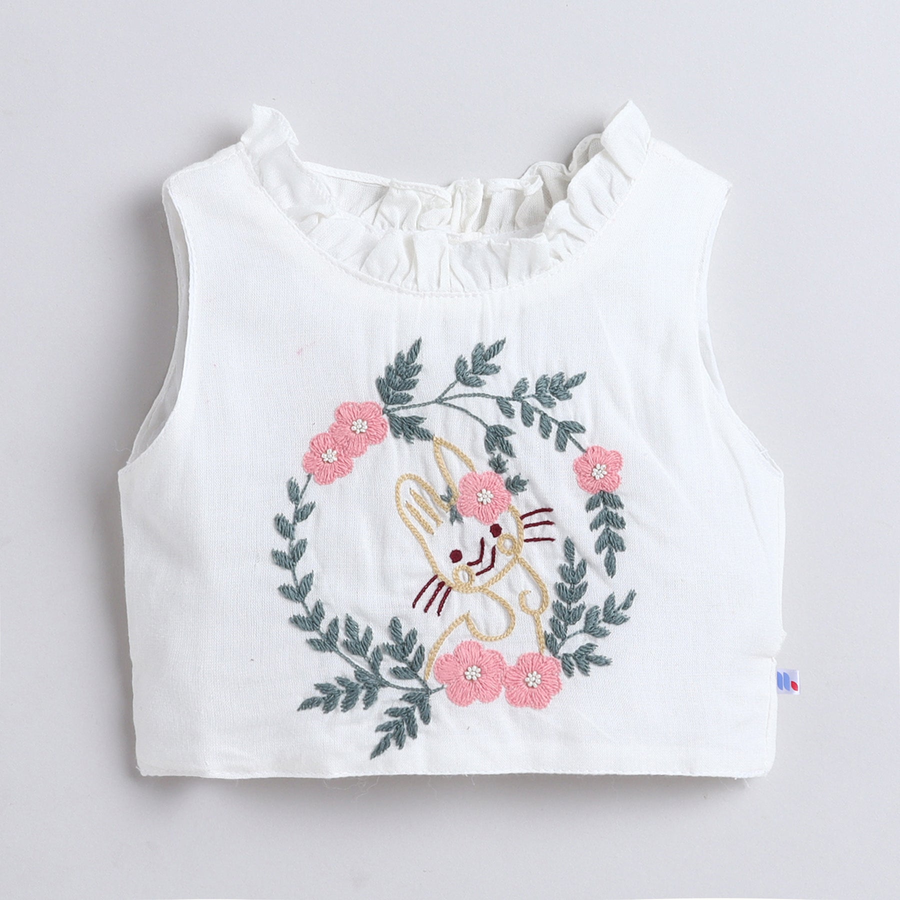 Many Frocks & Chanderi Sleeveless Rabbit Hand Embroidered Choli Lengha Dupatta Set - White & Pink