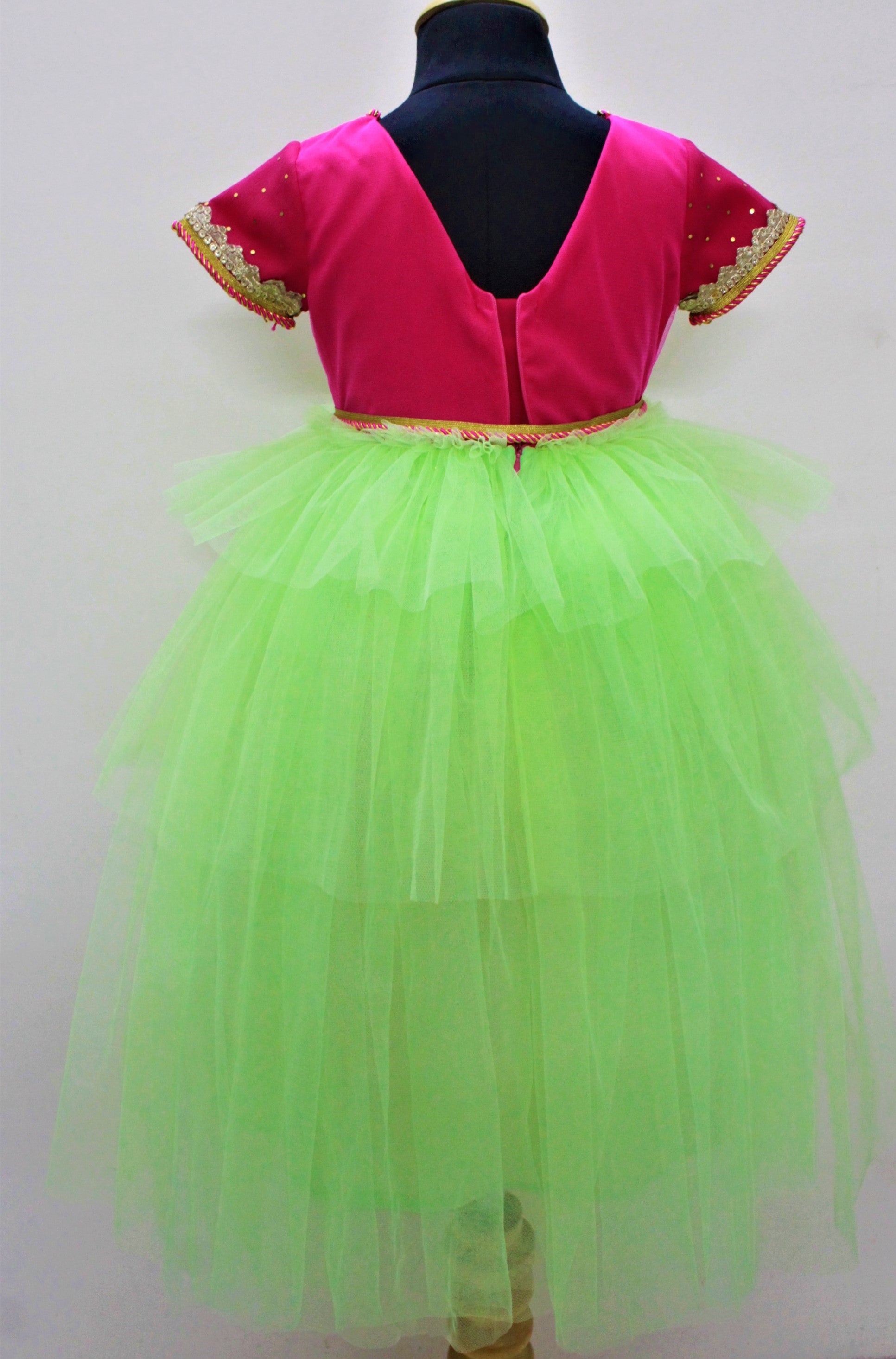 Many Frocks ethnic gown with shimmer body, sleeves and frills - Green