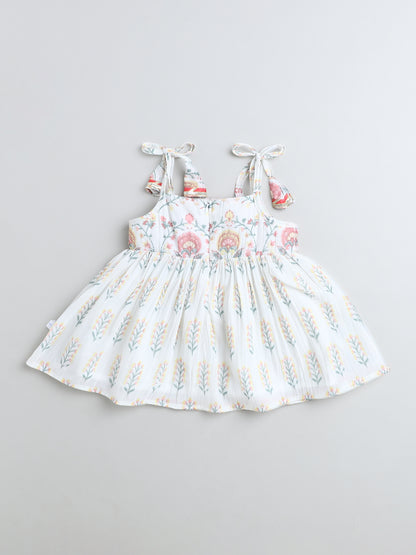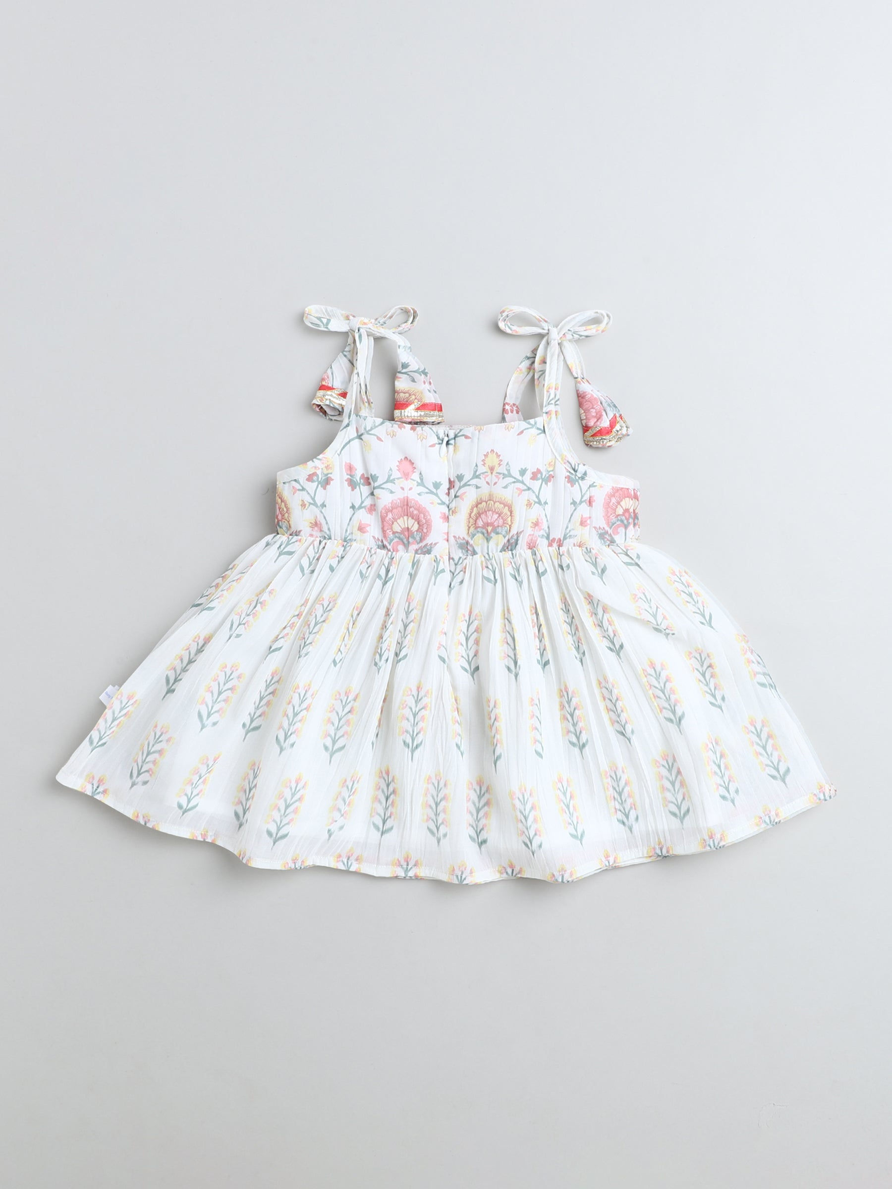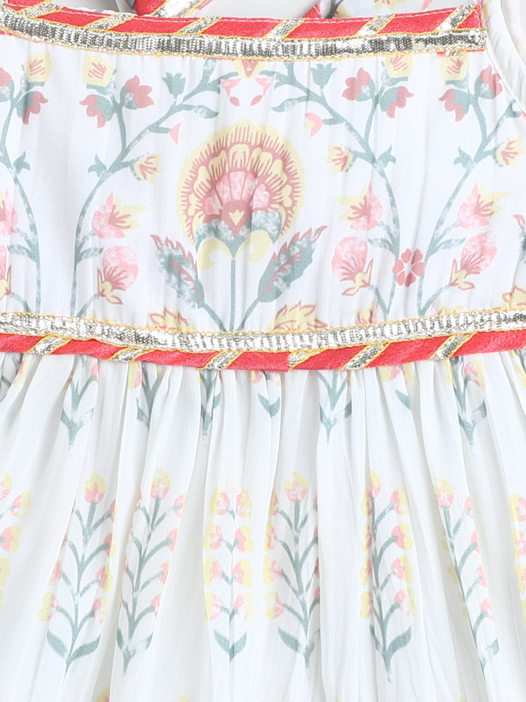 Many Frocks & Georgette Sleeveless Lace Embellished Printed Knee Length Flared Baby Girls Jhabla Ethnic Dress - Off White