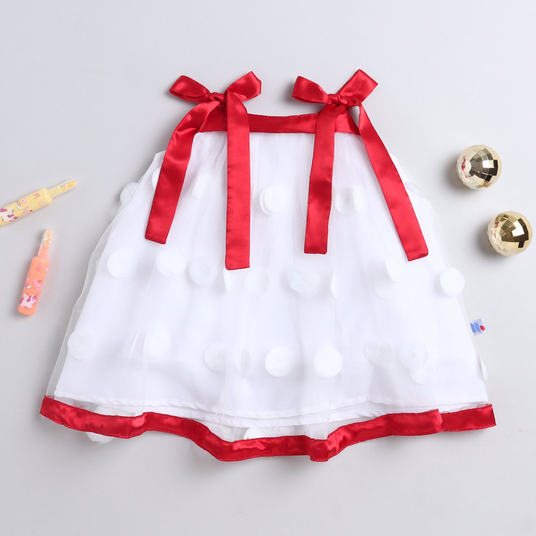 Many Frocks & Net Sleeveless 3D ruffle embellished knee length Aline Girls Christmas Party Dress - White
