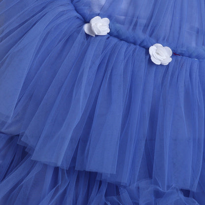 Many Frocks & Net Sleeveless Rose Embellished Party Dress - Blue
