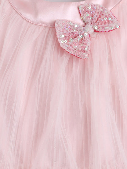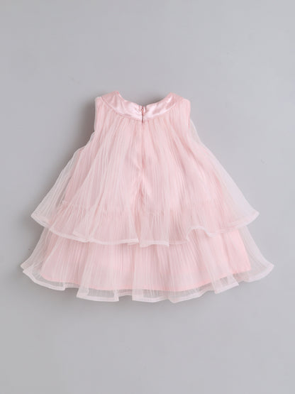 Many Frocks & Pleated Net Sleeveless Flower Embellished Knee Length Baby Party Dress - Peach