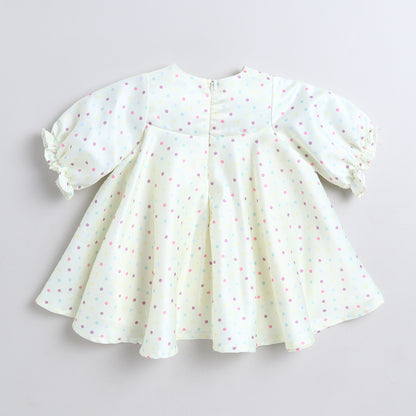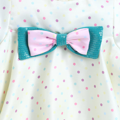 Many Frocks & Satin Short Sleeves Bow Embellished Knee Length Flared A Line Girls Christmas Casual Dress -Yellow