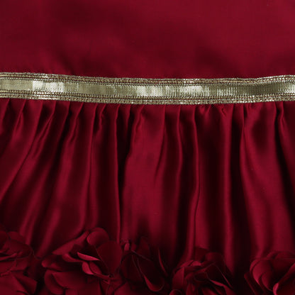 Many Frocks & Satin Sleeveless 3D Flower Lace Embellished Party Dress-Maroon