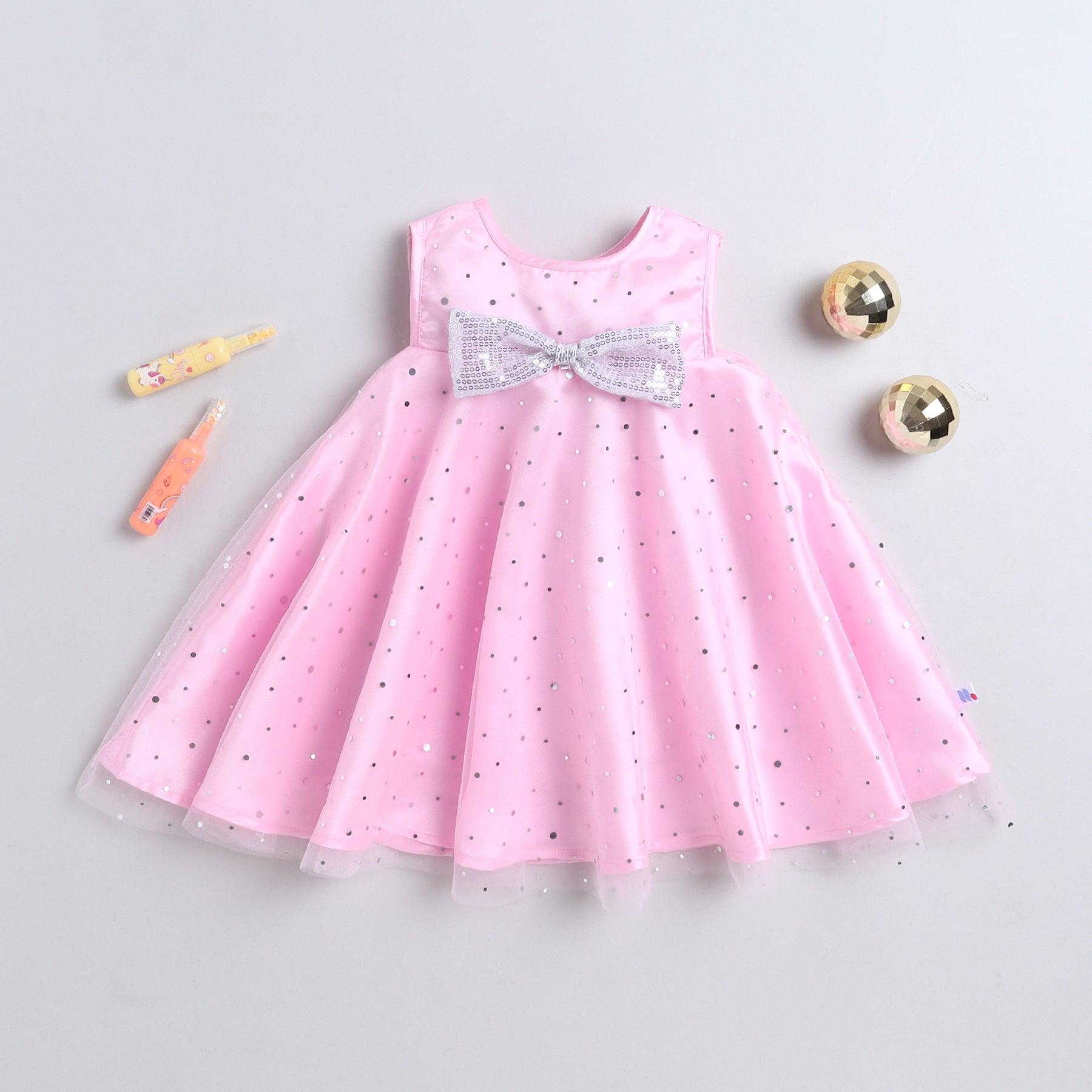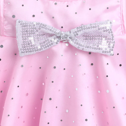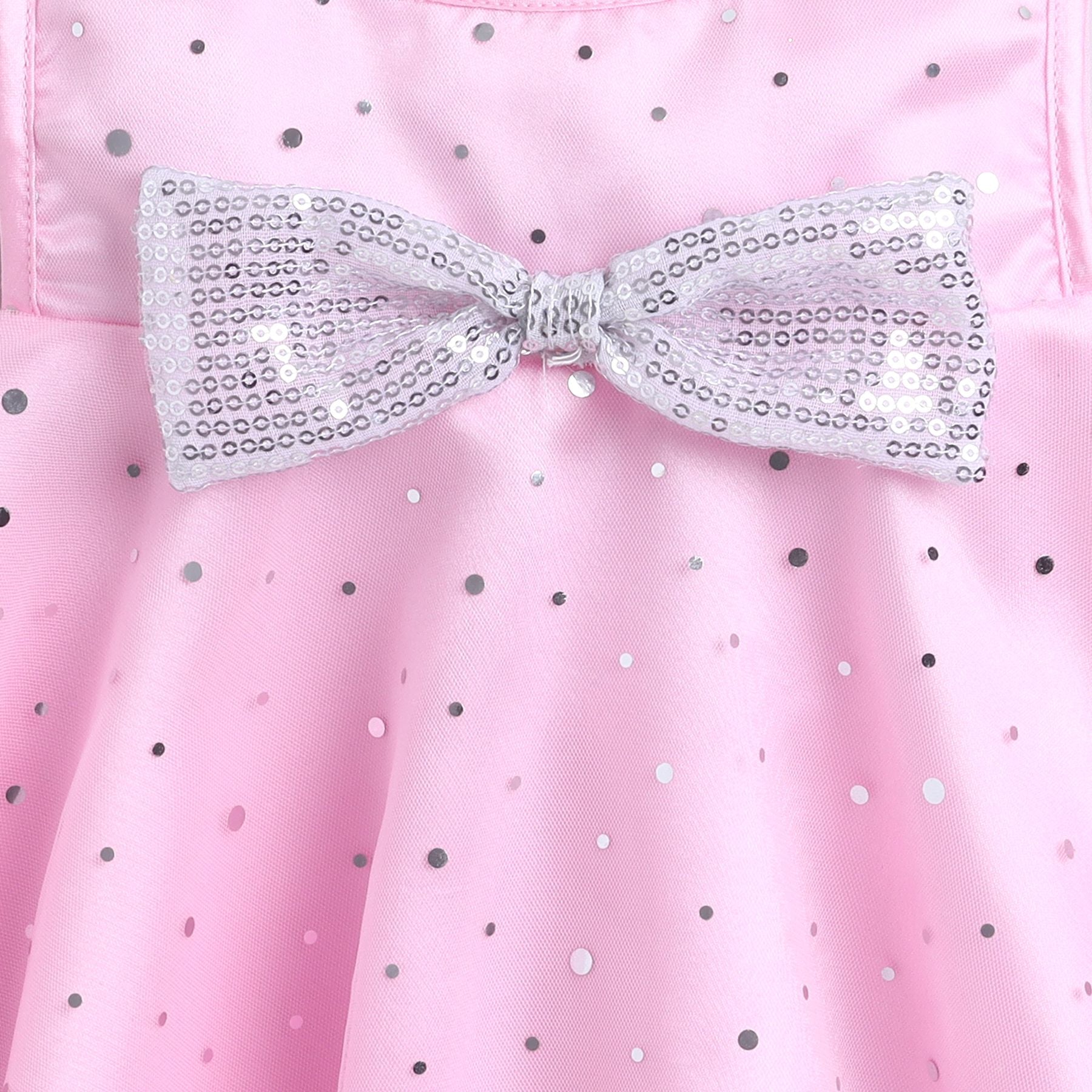 Many Frocks & Satin Sleeveless Bow Embellished Knee Length Flared A Line Girls Christmas Party Dress - Pink