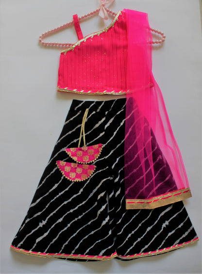 Many Frocks shimmer pleated top Palazzo with dupatta Ethnic set - Pink/Black