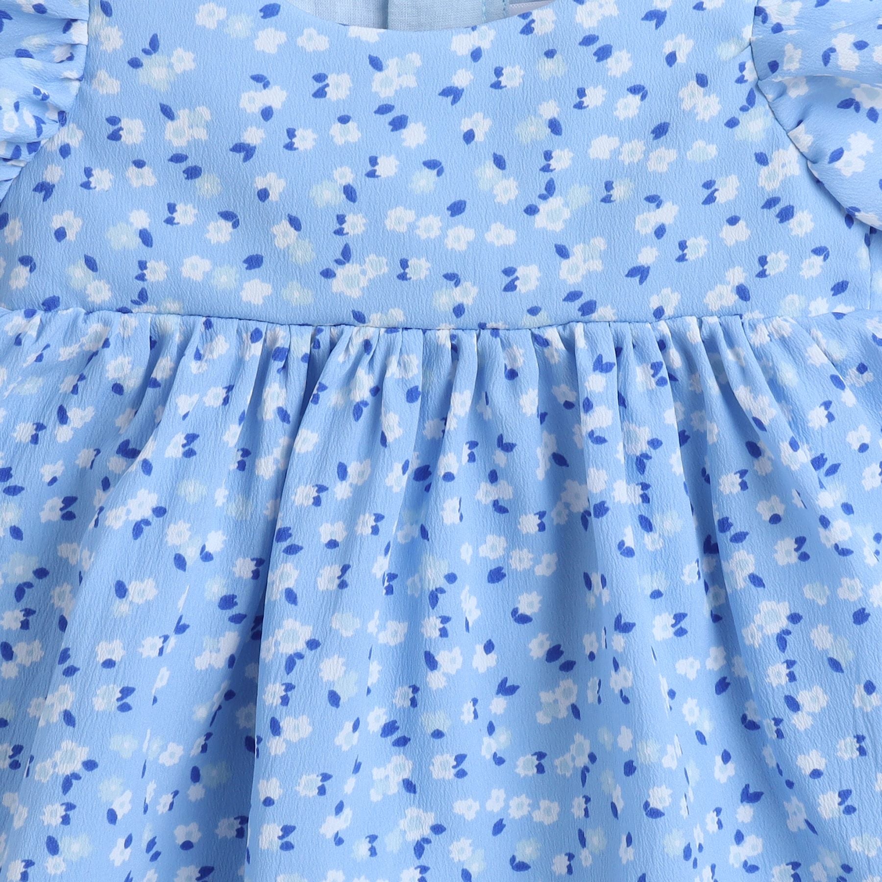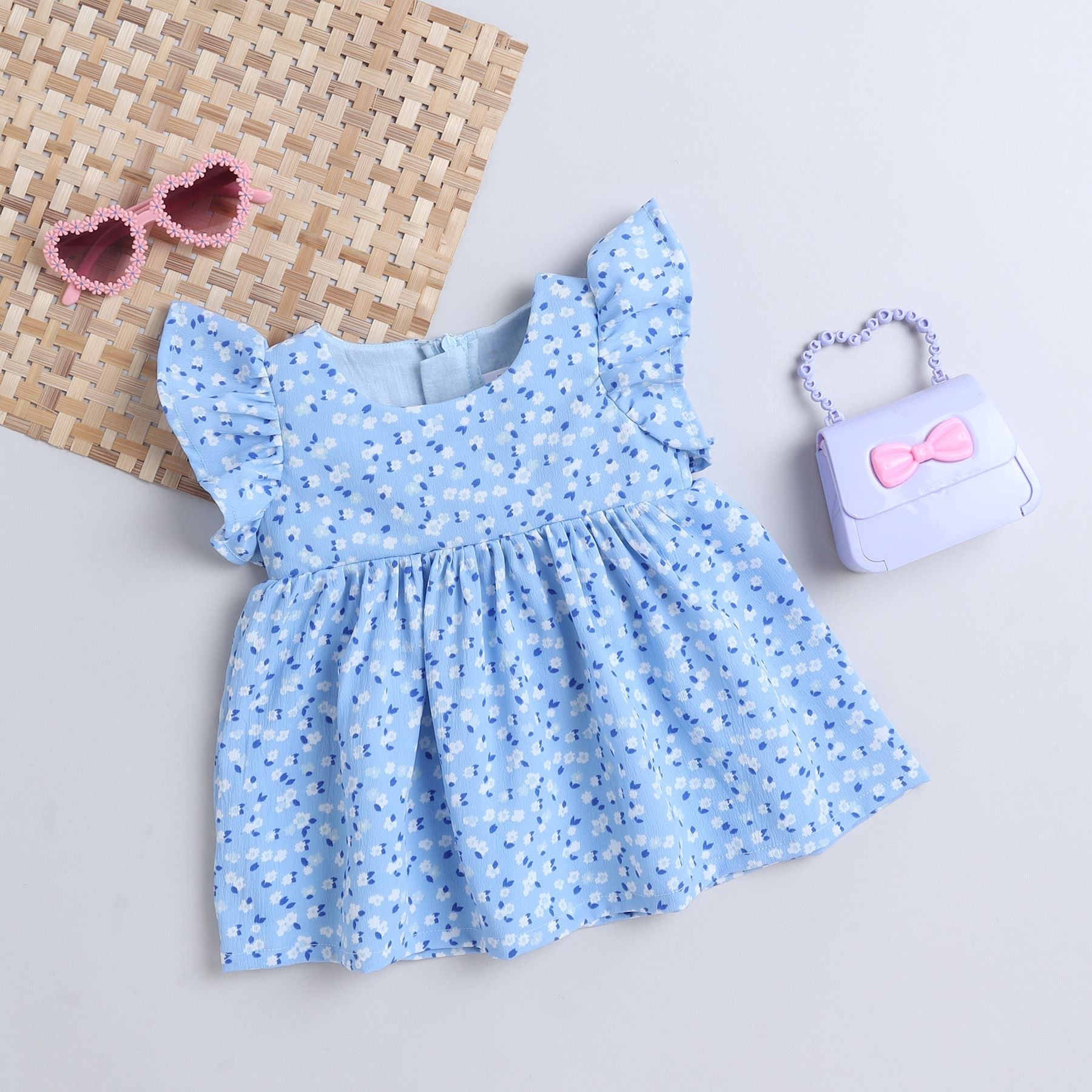 Many Frocks & sleeveless frilly knee length baby & girls casual dress - Blue