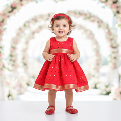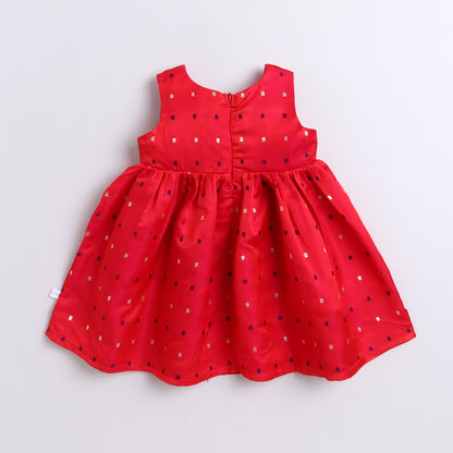 Many Frocks & sleeveless woven boti double lace embellished ethnic dress- pink